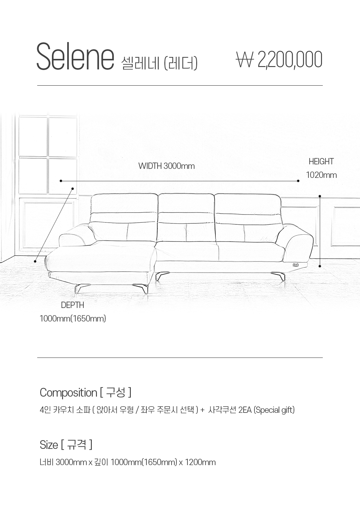 카우치 좌형/우형 변경가능 (주문 시 선택)