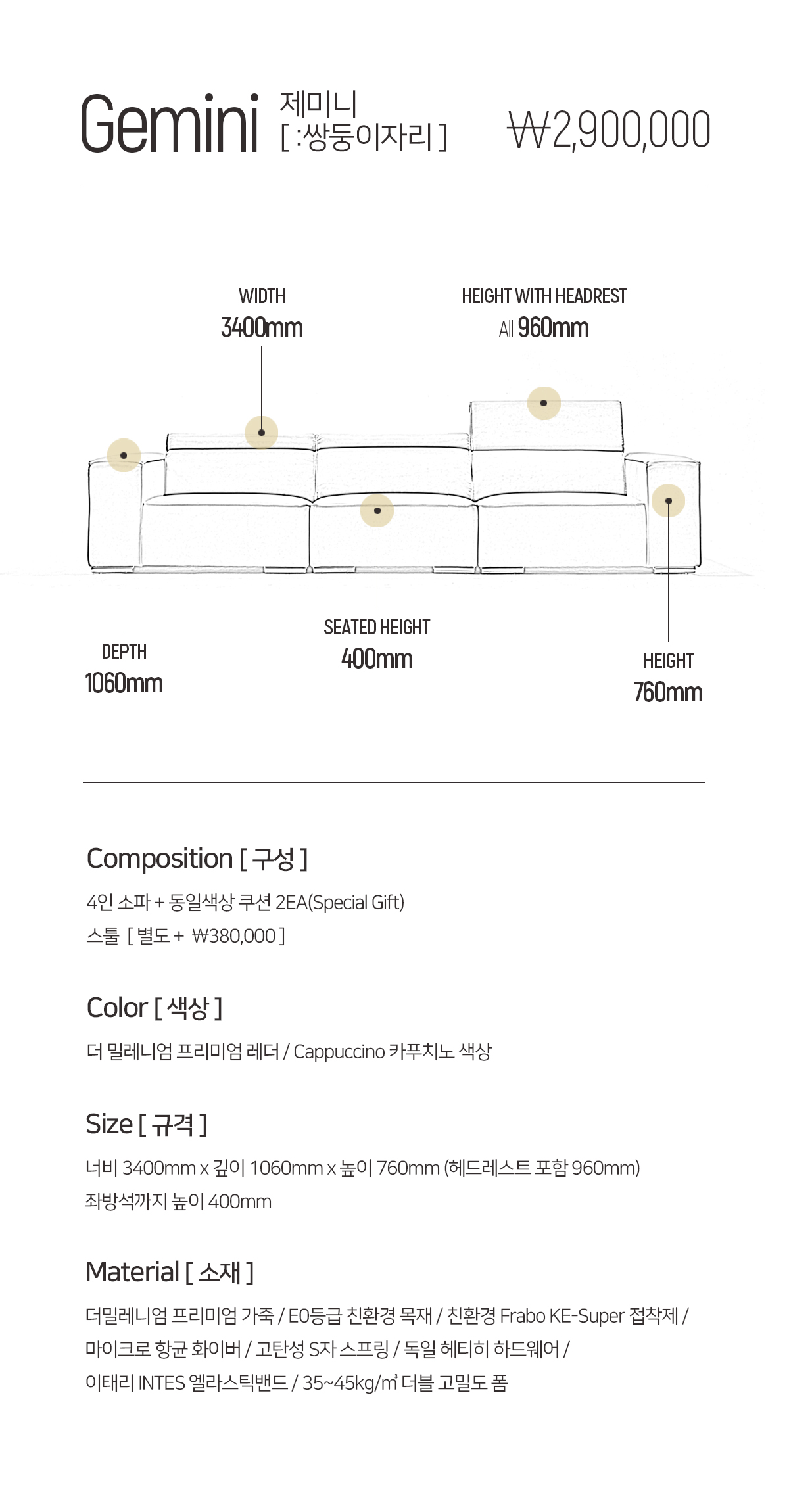 4인 소파 + 동일색상 쿠션 2EA(Special Gift)